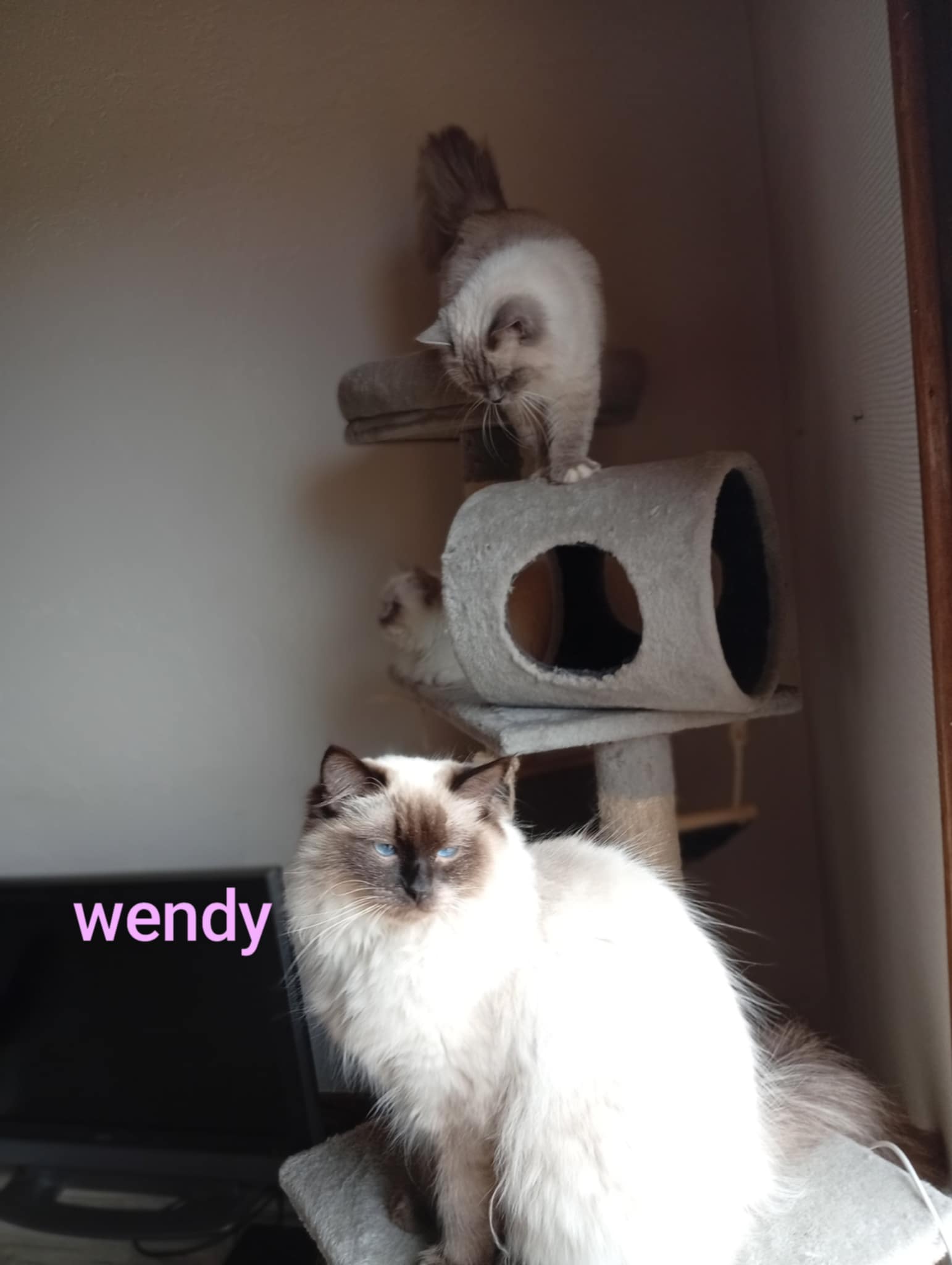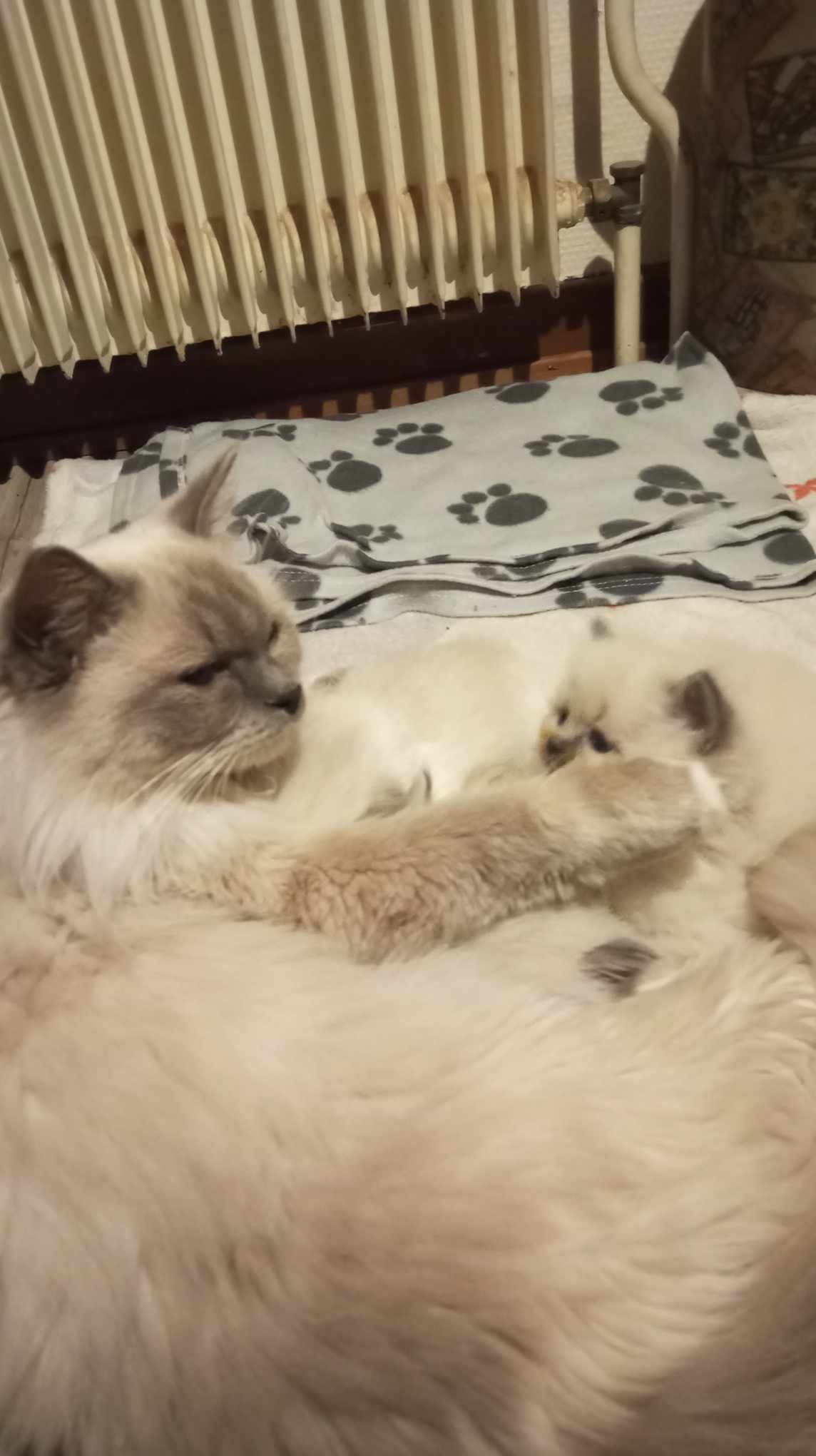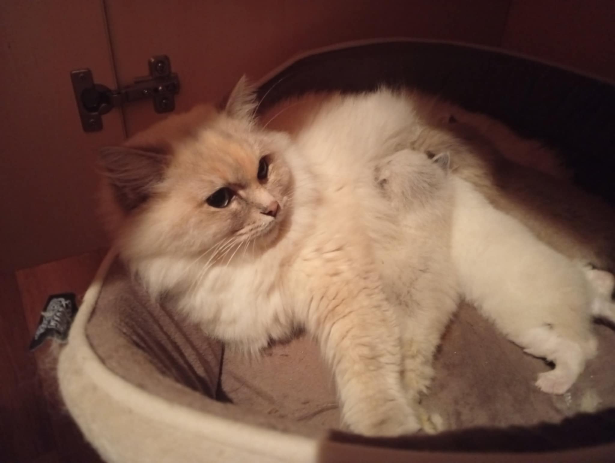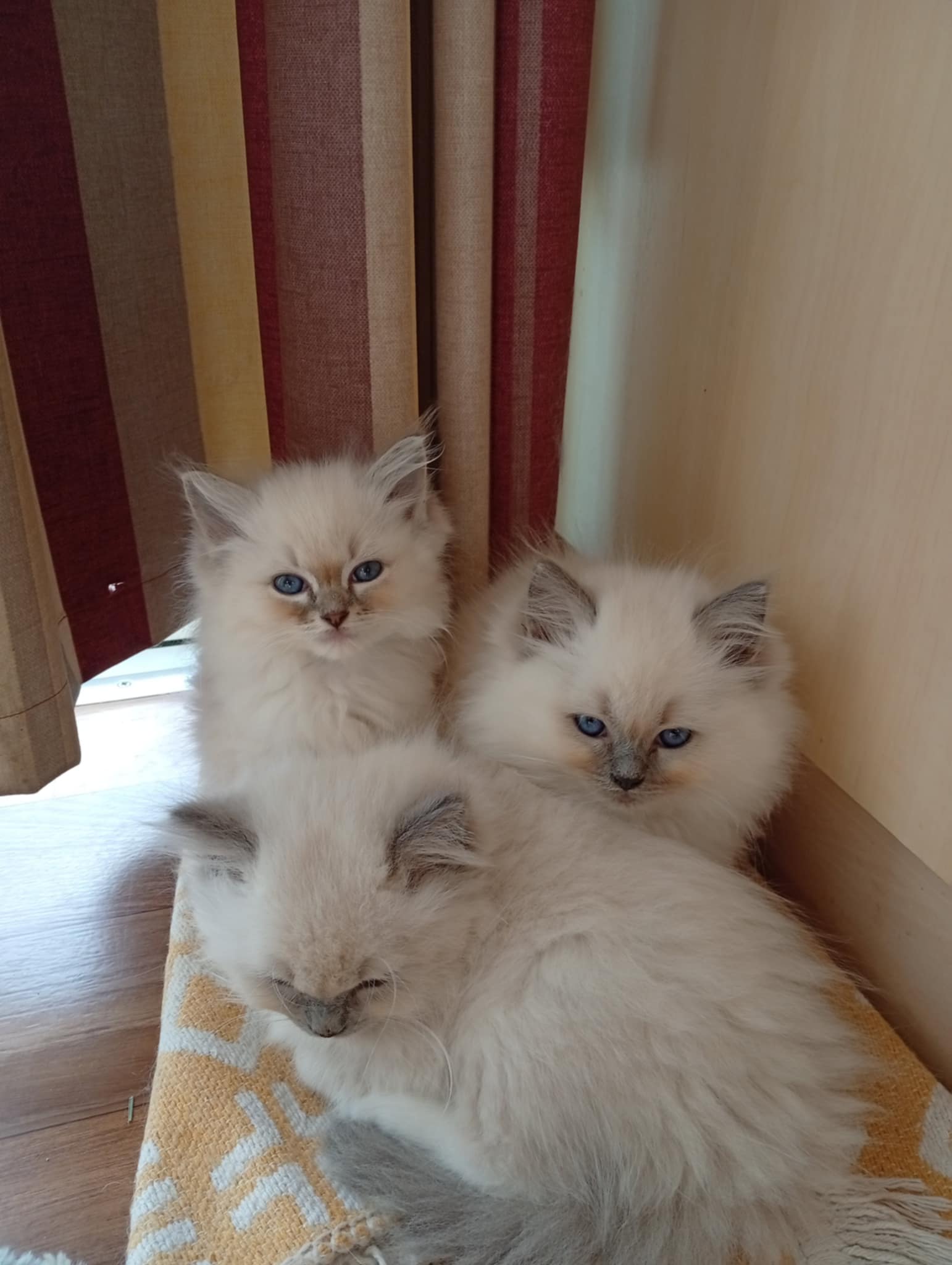 Tina des Reves d’Anais, Blue tortie mink et Uby du Pla’nana seal bicolor HM 3 petits chatons sont nés, 2 mâles et une femelle une blue tortie tabby mink mitted, un seal tabby mink mitted, un red tabby mink mitted les parents sont exceptionnellement doux et pacifistes